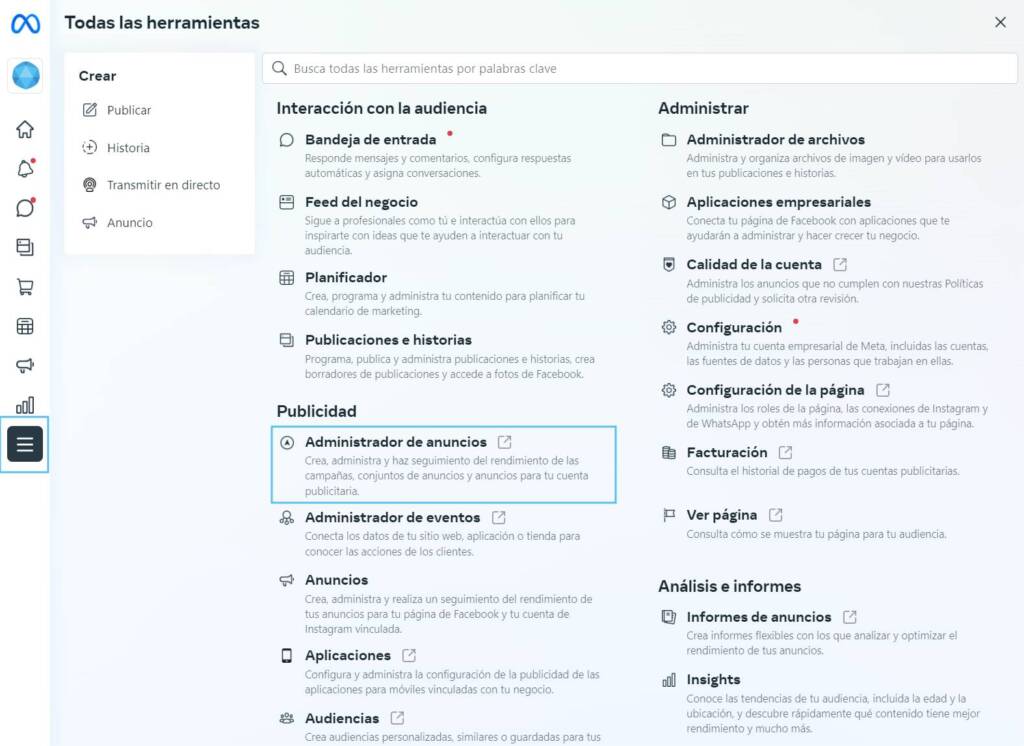 Para acceder al Administrador de Anuncios de Meta puedes hacerlo de diferentes formas: