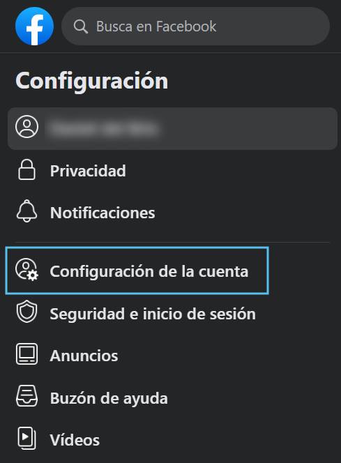 Una vez aquí, en el menú izquierdo accedemos a «Configuración de la cuenta«.