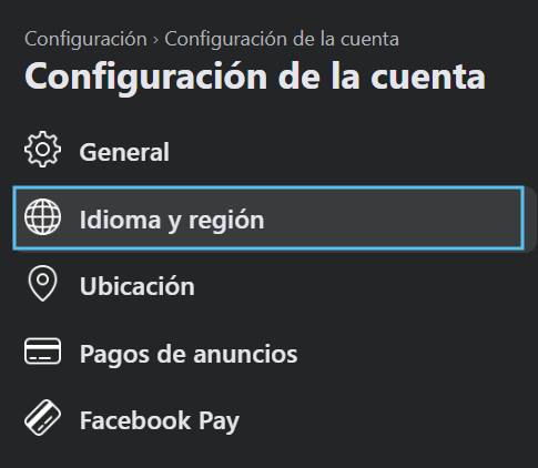 En el nuevo menú que se despliega una vez accedemos a «Configuración de la cuenta» debemos seleccionar la opción de «Idioma y región».