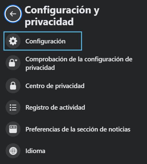 Debemos asegurarnos de que nos encontramos en la cuenta desde la que queremos descargar las facturas, una cuenta personal asociada al business manager de Meta o con permisos a la cuenta publicitaria, y, una vez hecho esto, debemos acceder a la sección del menú «Configuración y privacidad«.