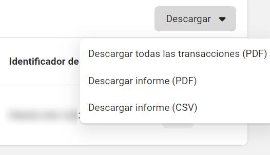 Por otro lado, podrás consultar las facturas que se han expedido dentro del periodo que has seleccionado, la fecha de expedición de la factura, el importe, la tarjeta o cuenta a la que se le ha realizado el cobro, el estado del pago y el identificador de IVA. Además, encontrarás un botón a la derecha donde podrás descargar las facturas de forma individual.