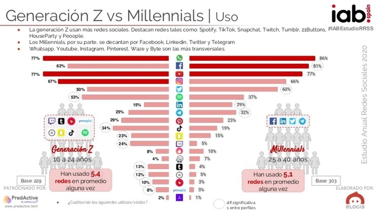 - Facebook: Solamente un 62% de los encuestados de la generación Z afirmó usarlo, frente al 81% de los millennials.